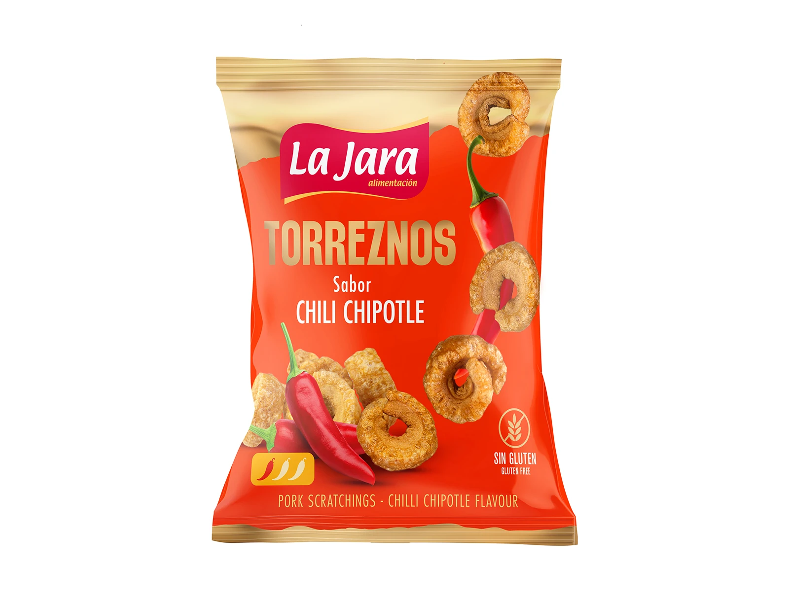 Crujientes torreznos de tocino de lomo de cerdo fritos en su propia grasa con aroma sabor Chili Chipotle.